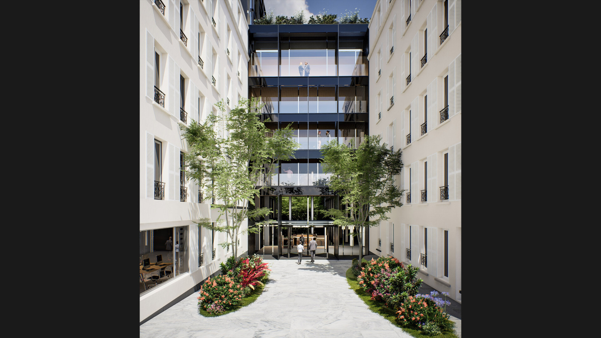 Le site, initialement composé de deux bâtiments séparés par un passage privé, a été restructuré par la création de volumes de liaison reliant les façades opposées. Cette intervention a permis de redonner cohérence à l’ensemble, tout en prévoyant des accès distincts et indépendants pour les fonctions bureaux et logements.