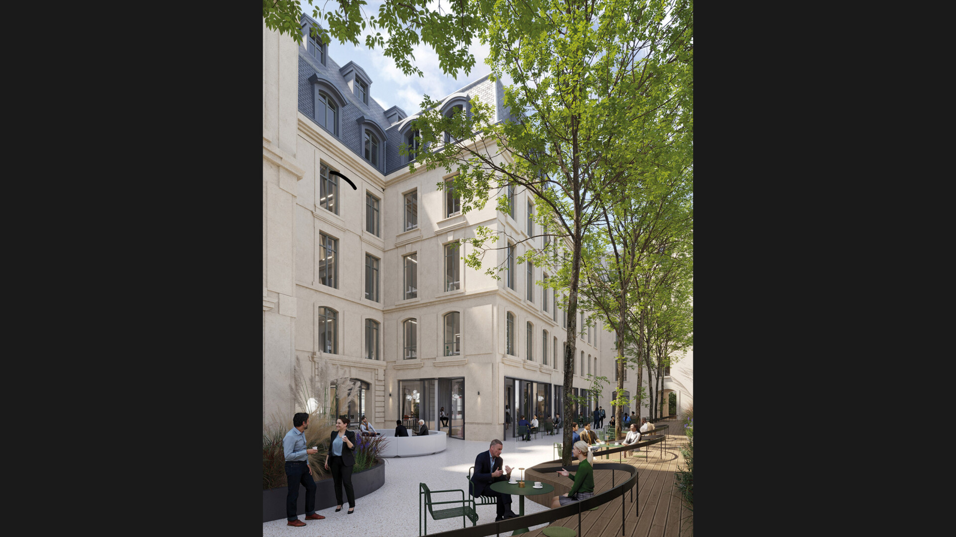 Cet ensemble immobilier, composé de trois immeubles réunis dans les années 2000, avait subi une restructuration brutale typique de l’époque. Les planchers et structures intérieures avaient été démolis, une circulation déportée avait été créée pour libérer de vastes plateaux de bureaux, et un passage cocher pastiche avait été ajouté comme seul vestige. Les deux premiers niveaux, utilisés par BNP comme salle des marchés, étaient privés de lumière naturelle, tandis que les locaux techniques occupaient les étages supérieurs et que les parkings, surdimensionnés, s’étendaient sur trois niveaux de sous-sol.