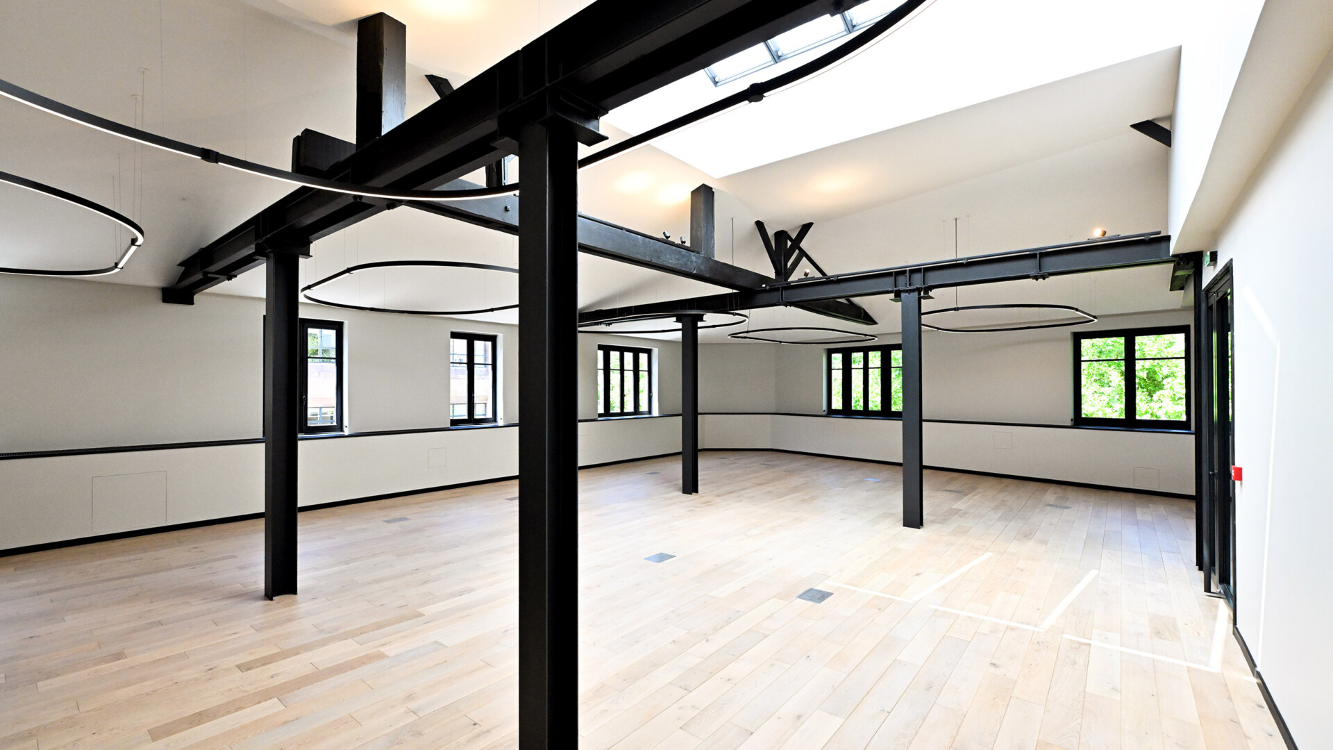 La réhabilitation du 95 bis boulevard Pereire visait à redonner cohérence et fluidité à l’ensemble. L’entrée principale a été réimplantée au 14 rue Puvis de Chavannes, marquée par un majestueux hall et un escalier à double courbure, véritable défi technique et geste architectural fort. La toiture, entièrement rénovée, retrouve sa splendeur d’origine avec la restauration d’une verrière monumentale sous combles. Un ascenseur a été intégré dans le respect de l’esthétique patrimoniale, tandis que les sous-sols ont été transformés en espaces de travail, nécessitant d’importants travaux structurels. En R+1, une terrasse baignée de lumière offre un espace de respiration au cœur de la ville, à la fois lieu de détente et symbole d’un art de vivre contemporain.