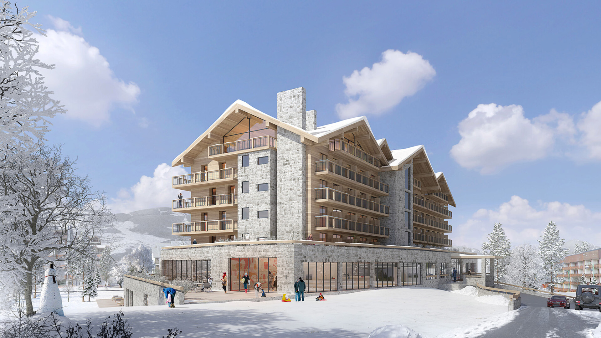 Notre proposition consistait à transformer cette barre typique des années 1970 en un édifice aux codes plus traditionnels, mieux intégrés dans le paysage alpin. L’hôtel retrouvait ainsi une identité en accord avec son environnement, tout en bénéficiant d’une offre de services largement enrichie : spa, piscine, restaurant avec une vaste terrasse plein sud, autant d’espaces pensés pour rehausser son attractivité et son positionnement.