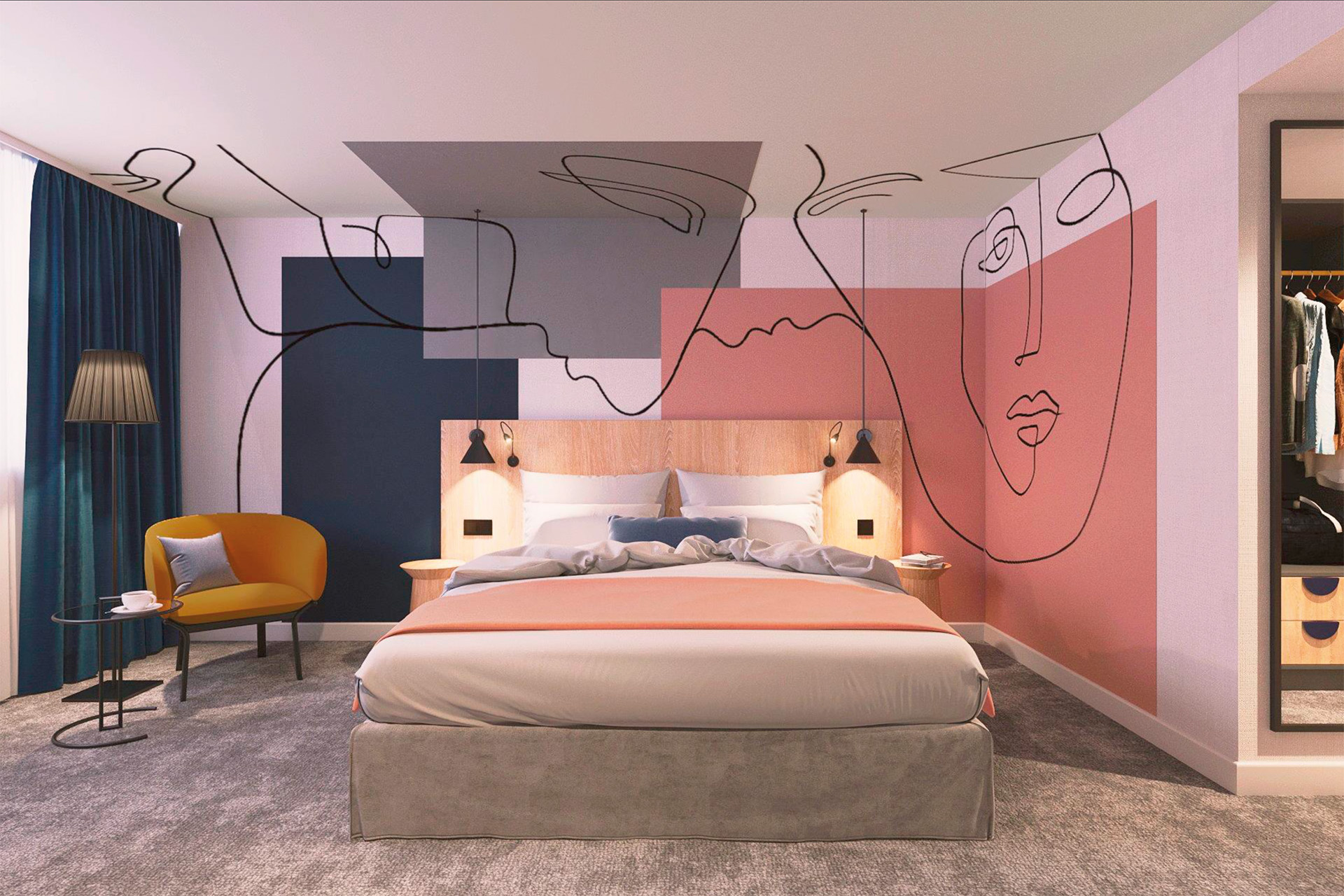 L’identité artistique devait aussi s’incarner dans les chambres, grâce à des dessins muraux réalisés par de jeunes artistes en école, donnant une touche vivante et évolutive aux intérieurs.