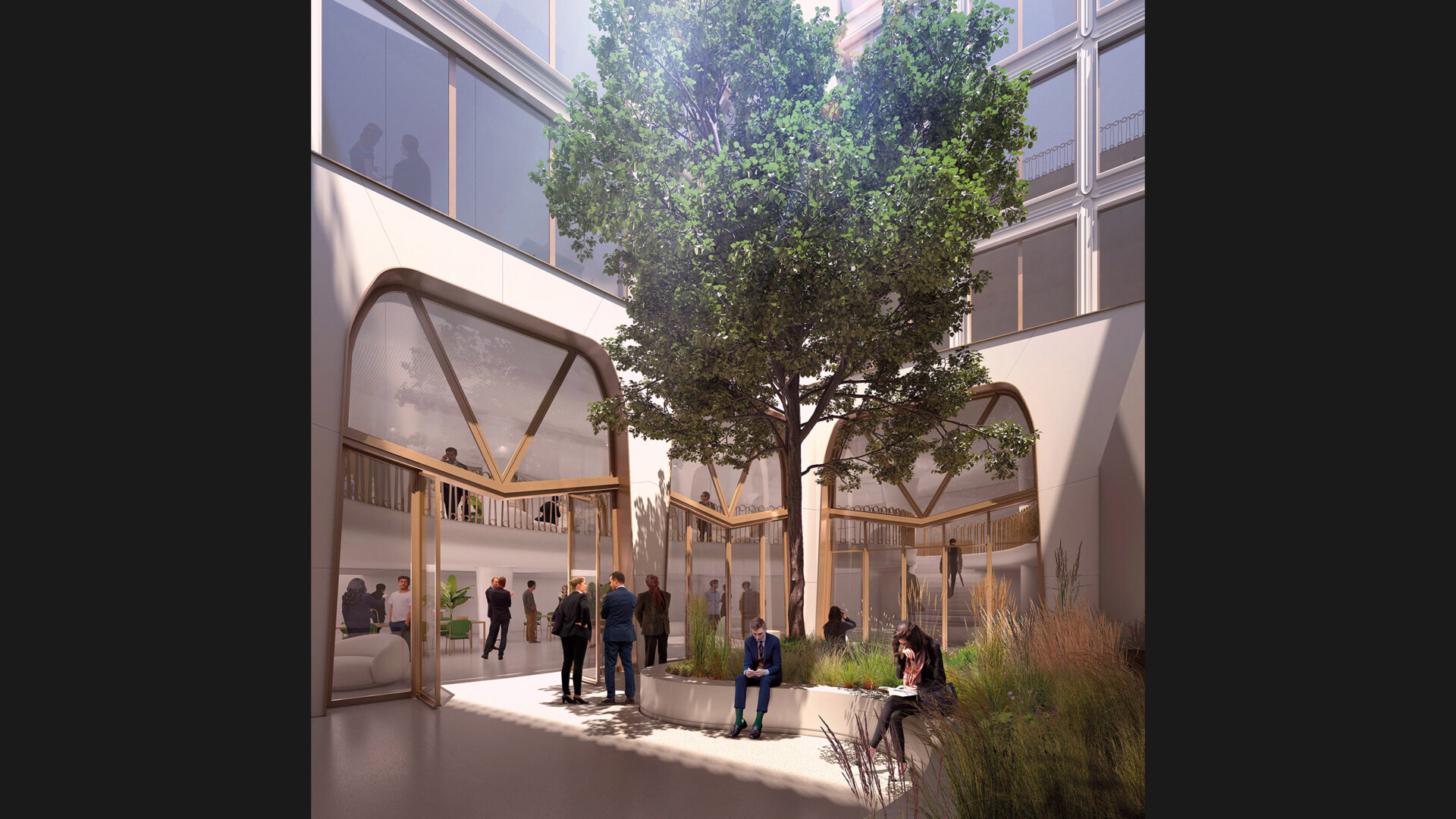 Il prévoyait pourtant une réécriture ambitieuse du socle, transformé en un duplex serviciel RDC-RDJ, ainsi que la création d’un escalier monumental en premier jour intégrant un ascenseur. Les plateaux de bureaux devaient être rénovés selon le système de plafonds en staff sculptés, signature d’Archibuild.