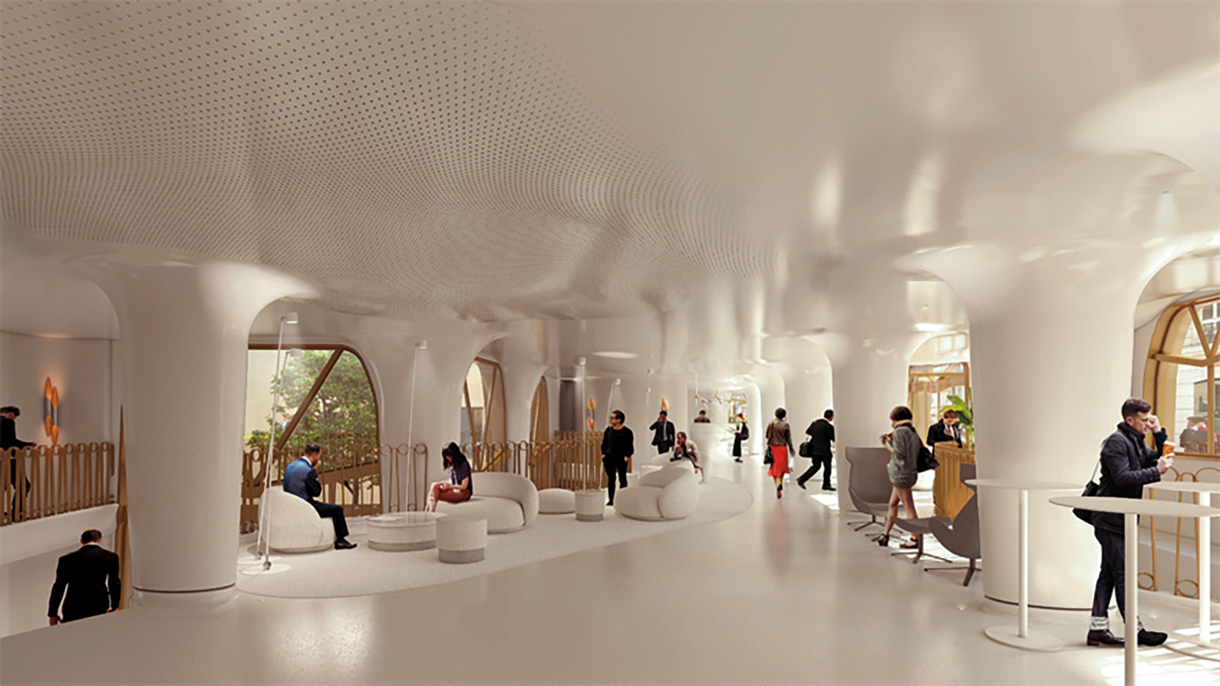 Les plafonds en staff, développés par Archibuild notamment sur le projet Carré Saint-Honoré, permettaient d’intégrer la technique tout en apportant une dimension sculpturale et élégante aux volumes.