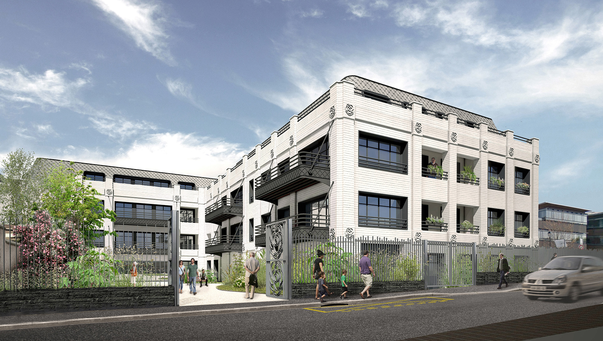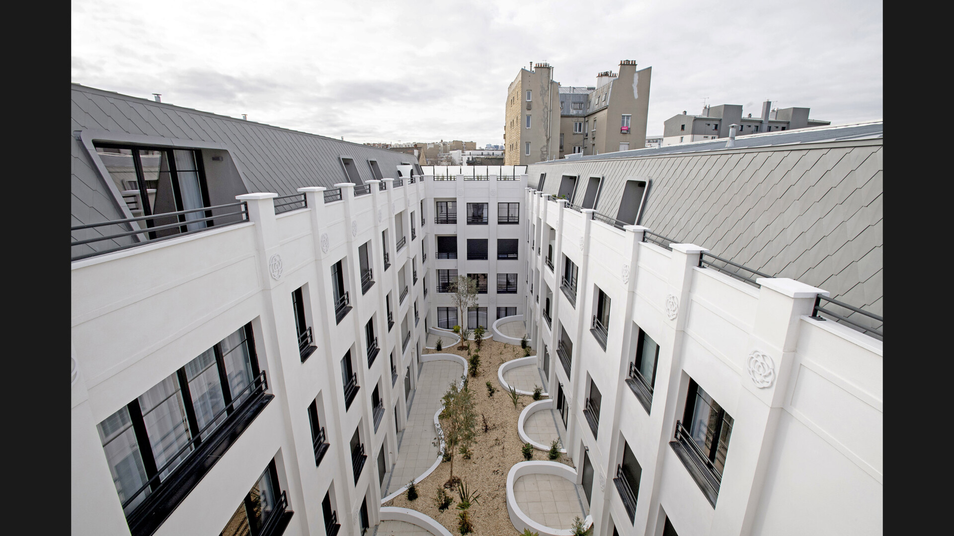 Le choix architectural s’est porté sur des façades pastiches, conçues à la fois comme un hommage à Gabrielle Chanel et comme un cadre rassurant pour les résidents. Ce langage classique et familier offre aux seniors un environnement porteur de sérénité et de continuité culturelle, à un moment de vie sensible, en évitant toute radicalité contemporaine.